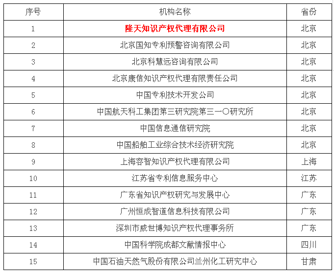 国家知识产权分析评议服务示范机构和示范创建机构是按照《国家知识产权局办公室关于开展2017年知识产权分析评议服务示范机构培育工作的通知》(国知办函协字〔2017〕300号)要求,通过机构自主申报、国务院有关部门及各省(区、市)、计划单列市知识产权局审核推荐,经过第三方初步核查和量化评价、现场集中汇报专家评审、公示等环节评选确定的。入选示范机构名单,意味着国家及行业同仁对隆天知识产权分析评议专业化服务的再一次认可。